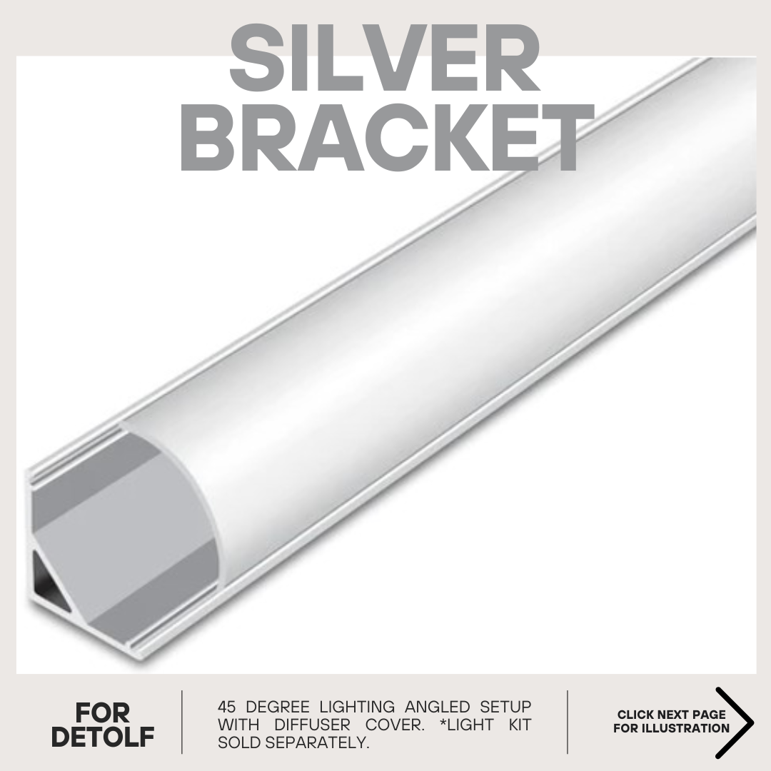 Each set includes 4 V-shape 45 Degree Aluminum Brackets and 4 Diffuser covers, designed specifically for a single Detolf cabinet application.